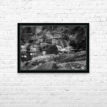 Step into a world of Whispers of Mist: Embracing Tranquility with this enchanting piece of art. A monochrome photograph captures a serene waterfall it...[+]