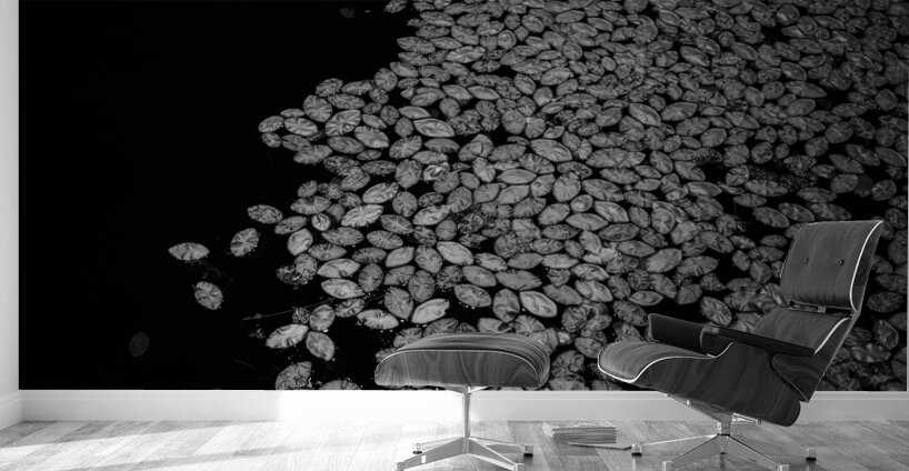 Enter a dream-like realm where lily pads gracefully dance upon dark waters their delicate forms illuminated by the gentle touch of light. A mesmerizing composition of natures beauty captured in black and white each pad intricately detailed in its pattern and texture. This enchanting image draws you into a world of mystery and serenity where the ethereal essence of the scene leaves you breathless with wonder. Experience the magic of the Lily Pad Dance and let yourself be transported to a place of tranquility and awe.