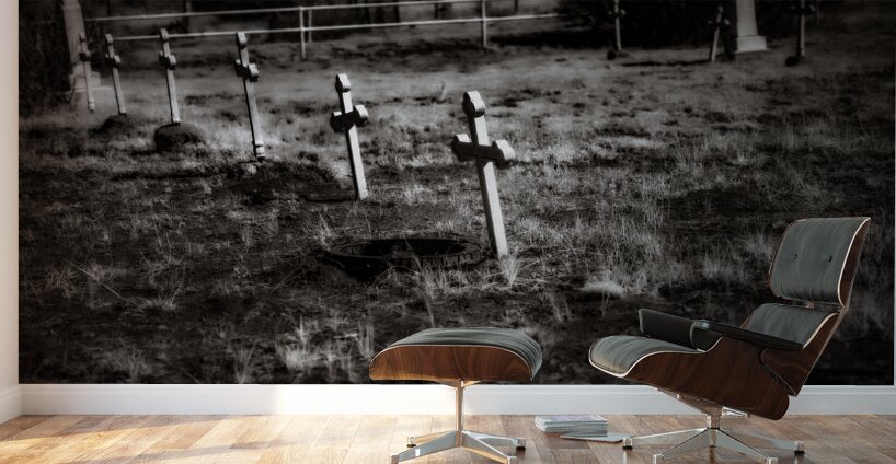 Stillness Among White Crosses is an evocative infrared black and white photograph capturing a solemn graveyard where a multitude of uncomplicated white crosses each a sentinel of memory stand in quiet testimony. Scattered across a field that appears to be gently claimed by nature the slightly overgrown grass adds a raw untamed element to the scene enhancing its ethereal quality. The interplay of light and shadow is both stark and tender with the white crosses almost glowing against the deep mysterious background accentuating the contrast between existence and oblivion. The somber composition speaks volumes allowing an intimate glimpse into themes of mortality and remembrance. The stillness that pervades the scene is almost tangible compelling viewers to pause and reflect to feel the weight of countless untold stories resting in the serenity of the landscape. This photograph elicits a contemplative mood urging the observer to delve into the transient nature of life and the enduring presence of those who have passed. The simple yet profound imagery stands as a poignant reminder of the delicate balance between life and death making the viewer a transient visitor in this timeless sacred space. The craftsmanship behind capturing such a moment in the stark monochrome of infrared photography adds to the otherworldly almost mystical aura that envelops the entire composition. Here lies a piece that resonates deeply leaving an indelible mark on the soul.