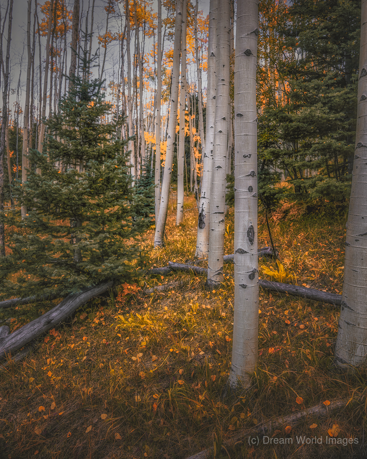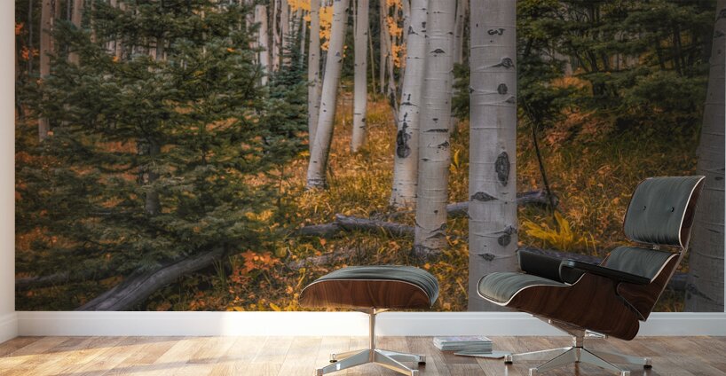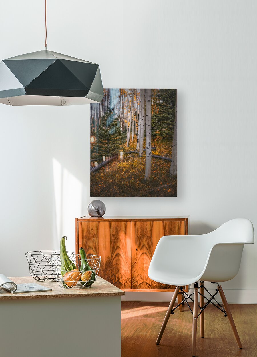 Eternal Transition of the Forest is an evocative photograph that captures the mesmerizing metamorphosis of an autumnal forest. Tall, slender aspen tre