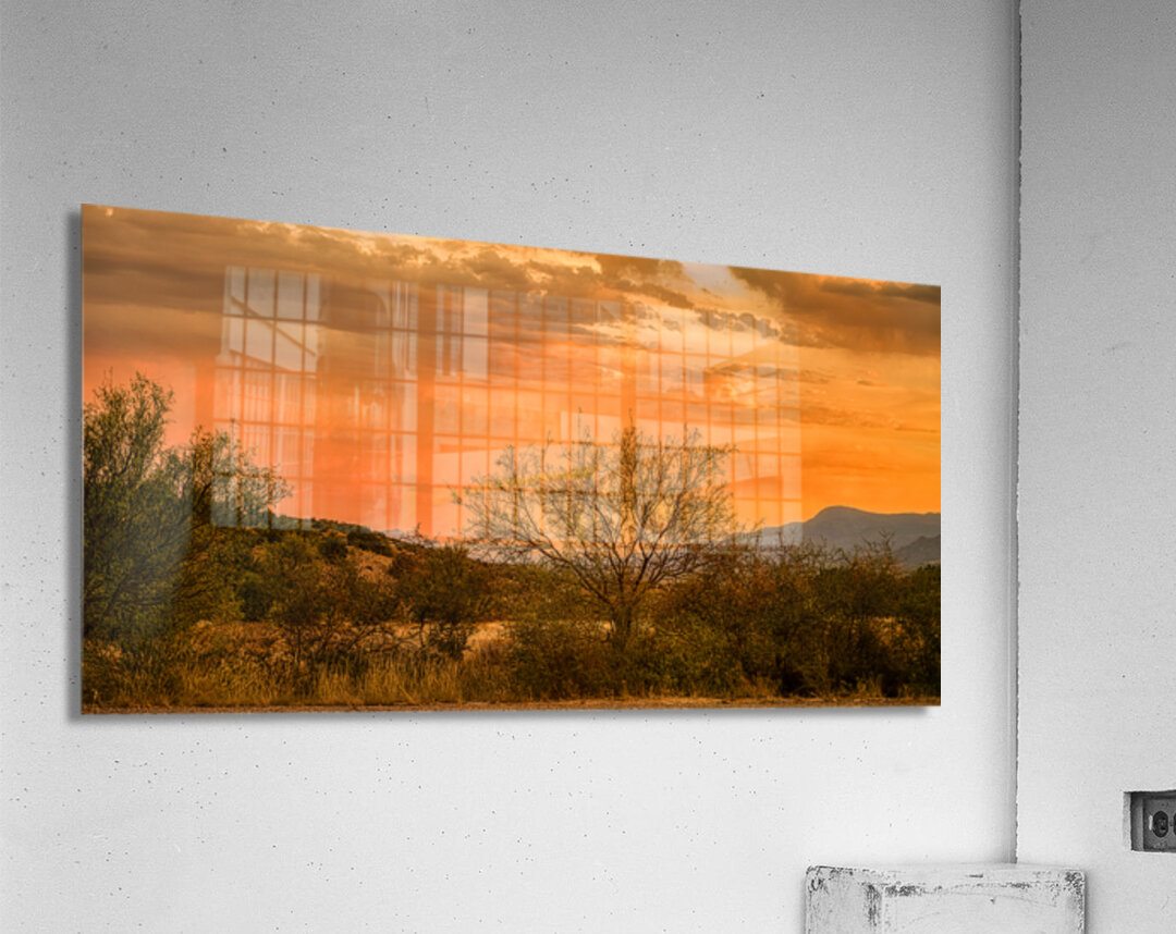 As my wife and I were driving back from the store in Cottonwood Arizona the sky started to light up in the most breathtaking way. We couldnt resist pulling over onto a dirt road to capture this moment. Behold a mesmerizing oasis of tranquility where time seems to linger in an eternal calm. This captivating photograph unveils a desert landscape bathed in the soft embrace of a setting sun. The sky above is a masterpiece of celestial artistry a gradient tapestry painted with enchanting hues of orange pink and blue. Wisps of clouds meander gently across the horizon whispering secrets carried by the dusk. In the foreground sparse desert vegetation subtly anchors the scene. A lone tree stands as a sentinel its silhouette etched against the vibrant twilight offering both contrast and harmony. The undulating contours of distant hills weave a gentle rhythm inviting the viewer to explore the vastness and depth of this serene sanctuary. As day gracefully yields to night this image captures not just the play of light and shadow but the essence of a landscape at peace with itself—a moment when natures serenity speaks to the soul unveiling mysteries often overlooked. Allow yourself to be drawn into this enigmatic dance of colors an experience as ephemeral as the desert breeze yet as enduring as the whispers of the dunes.