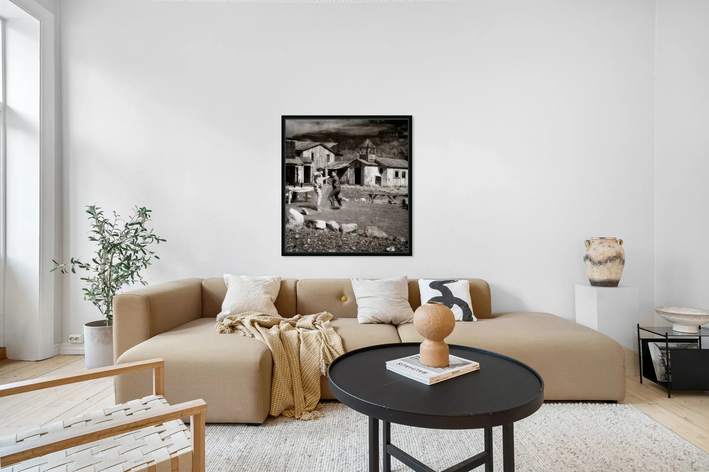 moody black and white wall art.