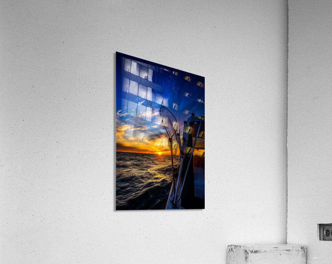 Set sail on a maritime adventure as Octobers golden hues paint the sky during a birthday boat ride with Wet Net Charters. Aboard a buddys boat the gentle rocking becomes a rhythmic dance with the waves creating the perfect canvas for capturing the essence of the setting sun. As the sun begins its descent casting a warm glow over the horizon the image unfolds. The interplay of light and shadow dances on the waters surface creating a mesmerizing reflection. The boat with its sturdy net poised for the next catch becomes a silhouette against the fiery backdrop of the sinking sun. This photograph is more than a moment frozen in time its a celebration of camaraderie the thrill of the open water and the magic of a birthday sunset. Wet Net Charters becomes the vessel for creating lasting memories where the net is cast not just for fish but for capturing the fleeting beauty of the suns descent on the horizon.