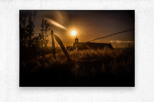 One afternoon my wife and I were on a simple errand to the San Cristobal post office a drive wed taken countless times before. But on the way back something caught our eye—the San Francisco de Asís Catholic Mission Church in Taos. The lighting was absolutely stunning and we knew we had to stop. The sun was low in the sky casting a warm golden glow that felt almost otherworldly as if the heavens themselves were breathing life into the landscape. In this captivating photograph I captured theres a mesmerizing dance between light and shadow painting an enchanting scene. The sun either rising or setting draped the church and the surroundings in a soft ethereal light that illuminated even the quietest corners. A rustic fence is silhouetted against this glowing sky its simple elegant lines evoking a sense of timelessness. To the right the humble church building with its small tower and cross stands subtly yet resolutely. Its form blends seamlessly with the mystical ambiance bringing to life centuries of whispered prayers and quiet moments of reflection. In the foreground the shadowy grasses and untamed vegetation are darkened by the backlit glow of the sun creating a stark yet beautiful contrast. The interplay of light and darkness only deepens the atmosphere of tranquility and solitude. Standing there it felt like a sacred moment where nature and human craftsmanship converged harmoniously and we were fortunate to witness it. The composition captures a serene balance between the natural world and the architecture of the church. The scene is filled with a profound calm urging anyone who looks at it to lose themselves in the beauty of this quiet landscape. In that fleeting moment earth and sky light and shadow all came together to create a space where the soul could reflect on the wonders that exist just beyond the ordinary.