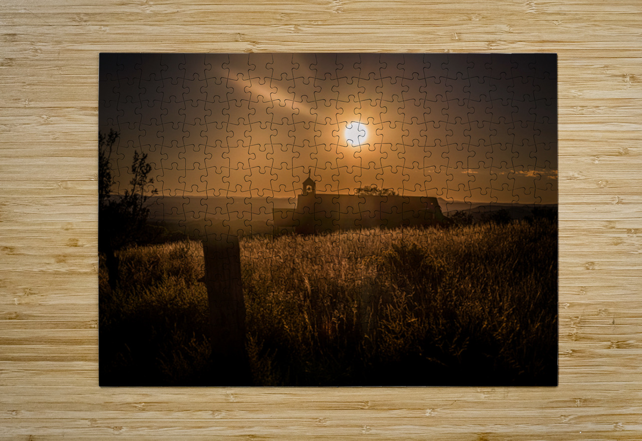 My wife and I were on our way back from the San Cristobal NM post office when we spotted the San Francisco de Asís Catholic Mission Church and the lighting was just incredible. The way the golden sunset bathed the landscape felt like pure magic and we knew we had to capture the moment. The scene became the photograph I call *Bell Tower Silhouette in Sunlit Harmony*. It captures that ethereal transition from day to night where the suns warm glow transforms the world into a realm of quiet beauty. Tall shimmering grasses stretched across the foreground their long shadows whispering with the breeze. And there it was—the church slightly off-center yet powerfully commanding the scene with its silhouette. Its pointed roof and delicate bell tower seemed to hold stories of times gone by enhancing the sense of mystery and reverence in the photograph. The sky was an almost perfect canvas painted with just a few wispy clouds dancing along the horizon giving space for the sunlight to softly fade into the calm of the approaching night. This image wasn’t just about what we saw it was about the feeling of serenity and the harmonious balance between the church’s architecture and the natural world around it. It invites you to pause reflect and marvel at the beauty that unfolds when light meets earth in perfect sunlit harmony.