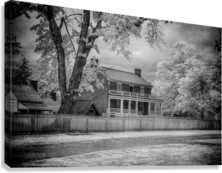 Embarking on a historical odyssey through Appomattox Courthouse Town my lens revealed a poignant scene along a winding weathered gravel road. This time the path gracefully led to the McLean House. On this hallowed site General Lee surrendered partially obscured in the distance and rendered in striking monochrome infrared. The winding gravel road framed by the solemn whispers of history invited contemplation on the profound moment that unfolded at the McLean House. In the monochrome infrared landscape the grayscale tones unveiled the nuanced textures of the road and the historic house creating a somber tableau that resonated with the echoes of surrender. Each curve of this historical route seemed to echo the resilience and profound decisions made. As the road meandered towards the distant McLean House the monochrome infrared lens heightened the contrasts and textures casting an ethereal and timeless aura upon the scene. The house where history pivoted stood in solemn silhouette against the backdrop of the infrared landscape. The ground seemingly coated in a spectral sheen added a layer of introspection to the surrenders historical weight. Venturing along the winding road history and visual poetry intersected once more. The stark black and white tones became a canvas capturing the emotional weight and enduring significance of the McLean House in the narrative of Appomattox Courthouse Town. This visual exploration of the winding road leading to the distant McLean House in monochrome infrared offered a contemplative perspective on the historical depth of Appomattox Courthouse. The image with its muted tones and timeless ambiance became a poignant ode to the towns silent surrender and enduring legacy.