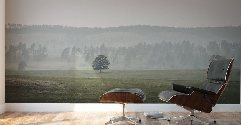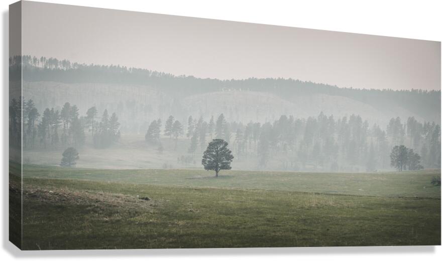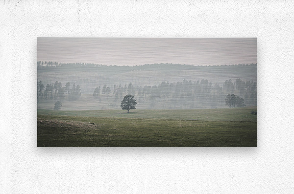 As my wife and I embarked on a scenic drive through the captivating landscapes of Custer South Dakota we found ourselves immersed in the timeless beauty of natures untouched expanses. Little did we know that our journey would lead us to a serene landscape captured in a moment of tranquil introspection. As we traversed the winding roads of the wildlife loop our eyes were greeted by a scene of subtle beauty—a vibrant green meadow stretching out before us alive with the colors of growth and renewal. At its center stood a solitary tree its proud silhouette a symbol of resilience and solitude amidst the vast expanse. In the background rolling hills or low mountains rose gently their sides adorned with clusters of trees that whispered secrets of ages past. A soft mist or light haze enveloped the landscape adding a sense of mystery and depth to the scene. Capturing the moment with my camera I felt a sense of awe and reverence for the quiet beauty that surrounded us. The subdued lighting and muted color palette imbued the image with a calming atmosphere inviting reflection on the majesty of the natural world. As we continued our journey through Custers wildlife loop the memory of the serene landscape and the solitary tree standing proudly amidst the meadow stayed with us a reminder of the tranquil beauty and timeless essence of the American West.