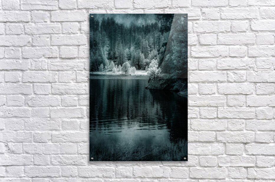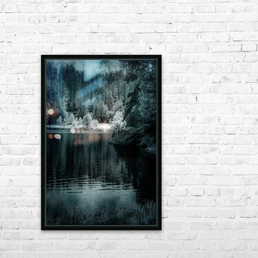 Enchanting Haze: Sylvan Lakes Smoky Pine Glow in Infrared Picture Frame Printing