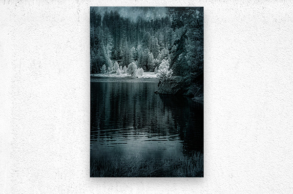 ABOUT THIS ARTWORK: ENCHANTING HAZE: SYLVAN LAKES SMOKY PINE GLOW IN INFRARED