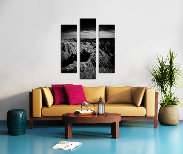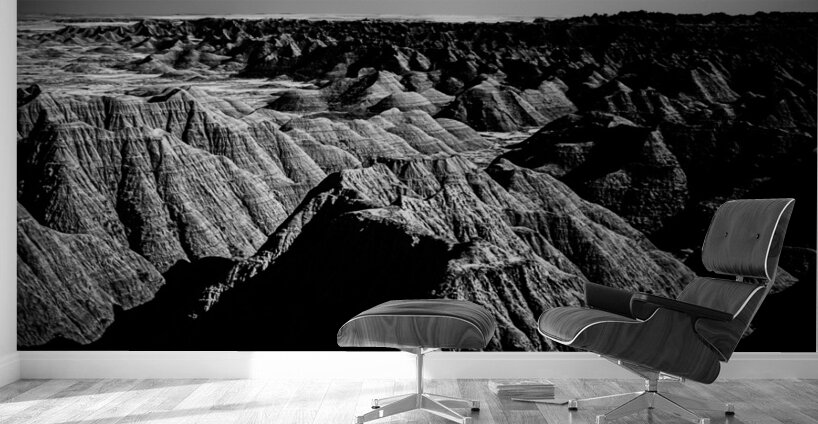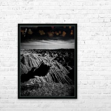Embark on an unforgettable adventure as my wife and I journeyed through the captivating landscapes of the Badlands in South Dakota. Witness the breathtaking beauty of this rugged terrain where every shadow tells a story of mystery and intrigue. Step into a world where the shadows dance across the rugged earth revealing a landscape shrouded in enigma. The realm of sharply ridged hills and deep valleys is illuminated by a captivating play of light and shadow bringing texture and depth to every crevice. The horizon stretches endlessly beckoning the viewer to explore beyond the intricate patterns carved into the earth. In a black and white photograph that captures the essence of the lands ancient soul this artwork invites you to lose yourself in the Shadows of the Earth.
