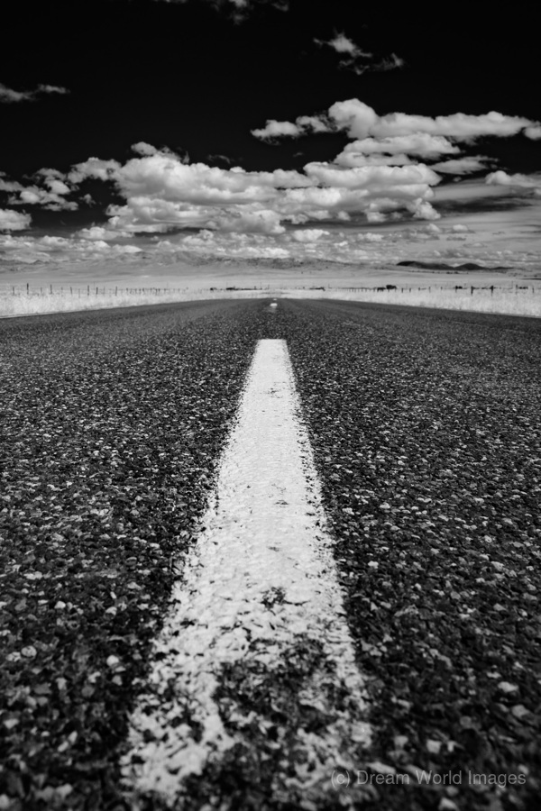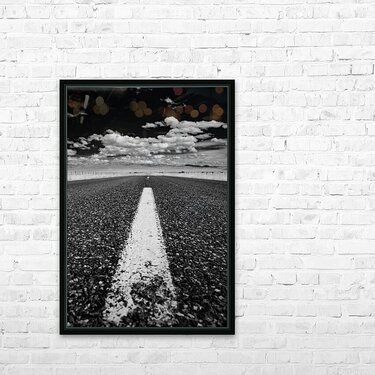 As we descended from the charming town of Marysville Montana my wife Cooper and I found ourselves drawn into an intimate connection with the rural landscape. Capturing the essence of this journey the photograph Pavement Symphony zooms in on the details of the road presenting a captivating view that feels as close as the pulse of the pavement beneath our wheels. In this black and white infrared masterpiece the pavement takes center stage revealing its textured symphony in intricate shades of white and grey. The fences standing as silent sentinels guide our gaze along the road creating a visual rhythm that harmonizes with the surrounding landscape. The sky transformed into a profound black canvas contrasts the intricate details of the pavement heightening the drama of the scene. Pavement Symphony offers a unique perspective drawing viewers into the tactile experience of the journey. The intimate closeness to the road creates a sense of connection and immediacy inviting onlookers to feel the heartbeat of the rural landscape.