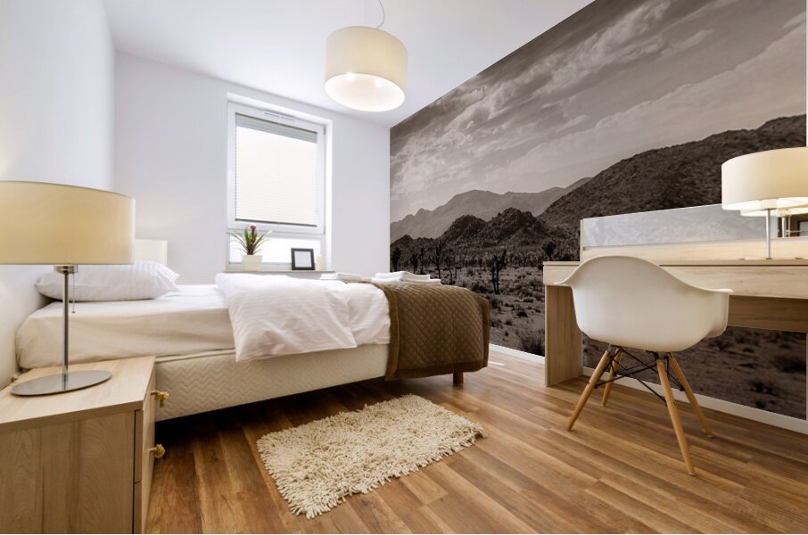 Where Joshua Trees whisper to timeless skies sepia dreams paint stories in desert light. Through eternitys gentle lens even solitude becomes a sacred ...[+]