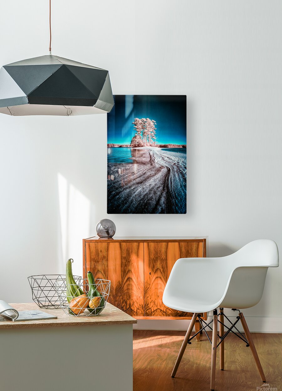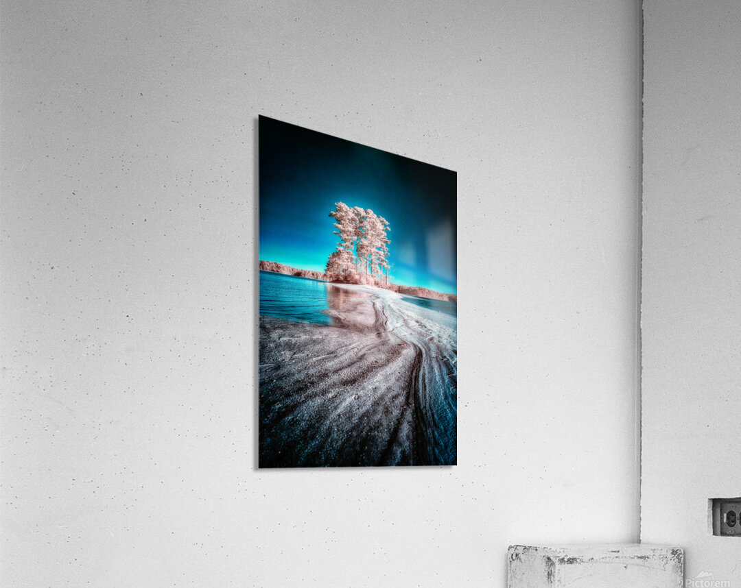 Embark on a captivating visual journey as we travel the enchanting landscapes of Wind Creek State Park where natures vibrant palette is revealed in a breathtaking infrared image. In this immersive scene a cluster of trees typically surrounded by water finds itself connected to the mainland through a sandbar unveiled during lower lake levels. The ethereal sentinels the trees are transformed into captivating figures bathed in light red hues standing resilient against a vibrant blue sky that deepens toward the edges. As the sun casts its golden rays the play of light and shadow adds depth and dimension to this mesmerizing tableau. This captivating infrared photograph captures the exquisite convergence of elements—a surreal dance of reds and blues that breathes life into the unique landscape of Wind Creek State Park. The sandbar a transient pathway serves as a visual guide leading the viewer into the heart of this captivating scene where natures vibrant colors and the parks distinctive topography come alive. As we immerse ourselves in this tapestrys intricate details the sandbars transient nature becomes a metaphor for the ever-changing beauty that Wind Creek State Park offers. The interplay of vibrant colors and the unique landscape create a harmonious visual symphony inviting you to explore the parks dynamic and diverse ecosystem. Titled Out There this image is more than a photograph its an invitation to witness the magical transformation of nature where Wind Creek State Park becomes a canvas for the interplay of colors light and shadow. Join us on this visual odyssey and let the enchanting allure of natures alchemy unfold in every pixel of this mesmerizing infrared scene.