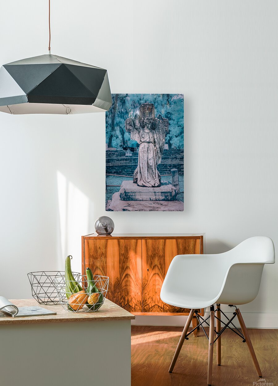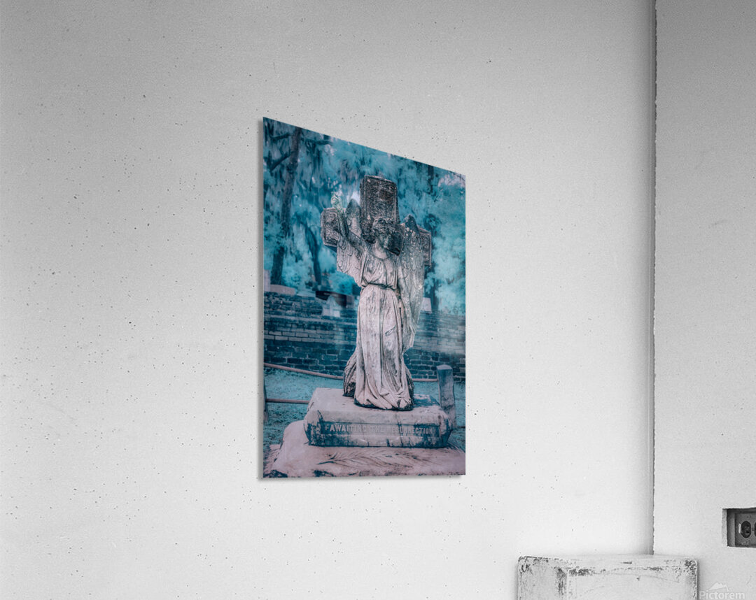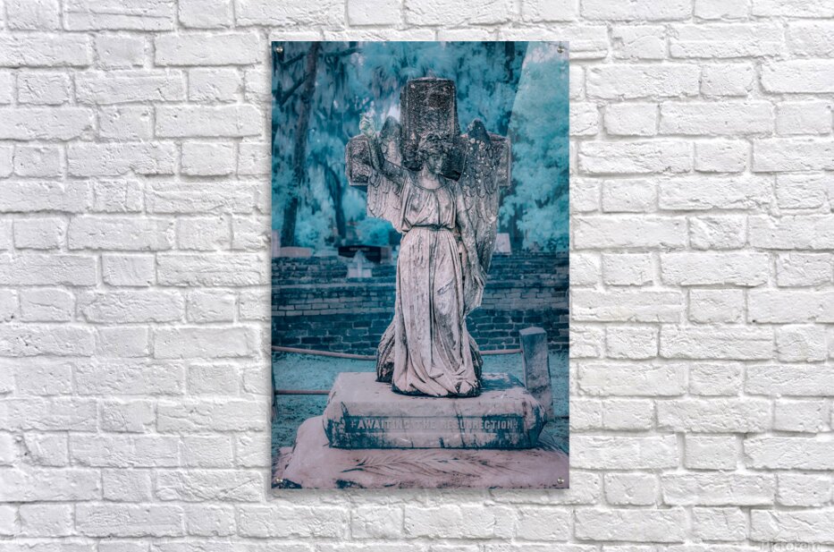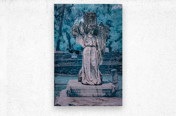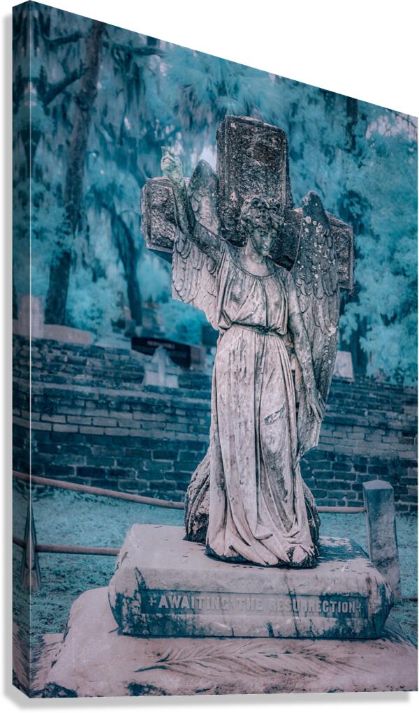 On a chilly and rainy day in Saint Marys Georgia my wife and I embarked on a poignant journey through Oak Grove Cemetery. The raindrops gently tapped on our umbrellas as we wandered through the historical grounds discovering the unique stories etched in the heart of this coastal town. Our path led us to a captivating memorial—an angel sculpture standing gracefully with a hand raised bearing a solemn statement: awaiting the resurrection. The angelic figure adorned with raindrops symbolized hope and reflection amidst the cold and rainy day. The atmosphere held a quiet reverence as we stood before the angel memorial. The rain lent a somber touch to the scene adding an emotional depth to our visit. The words inscribed at the statues base resonated with a sense of anticipation inviting contemplation on the cycle of life and the hope for a brighter future. This family visit to Oak Grove Cemetery became more than a rainy day exploration—it became a moment of solemn reflection and connection with the history and symbolism held within the coastal towns landmarks. The angelic presence captured amidst the raindrops became a cherished memory reminding us of the enduring spirit that persists even amid cold and somber weather.