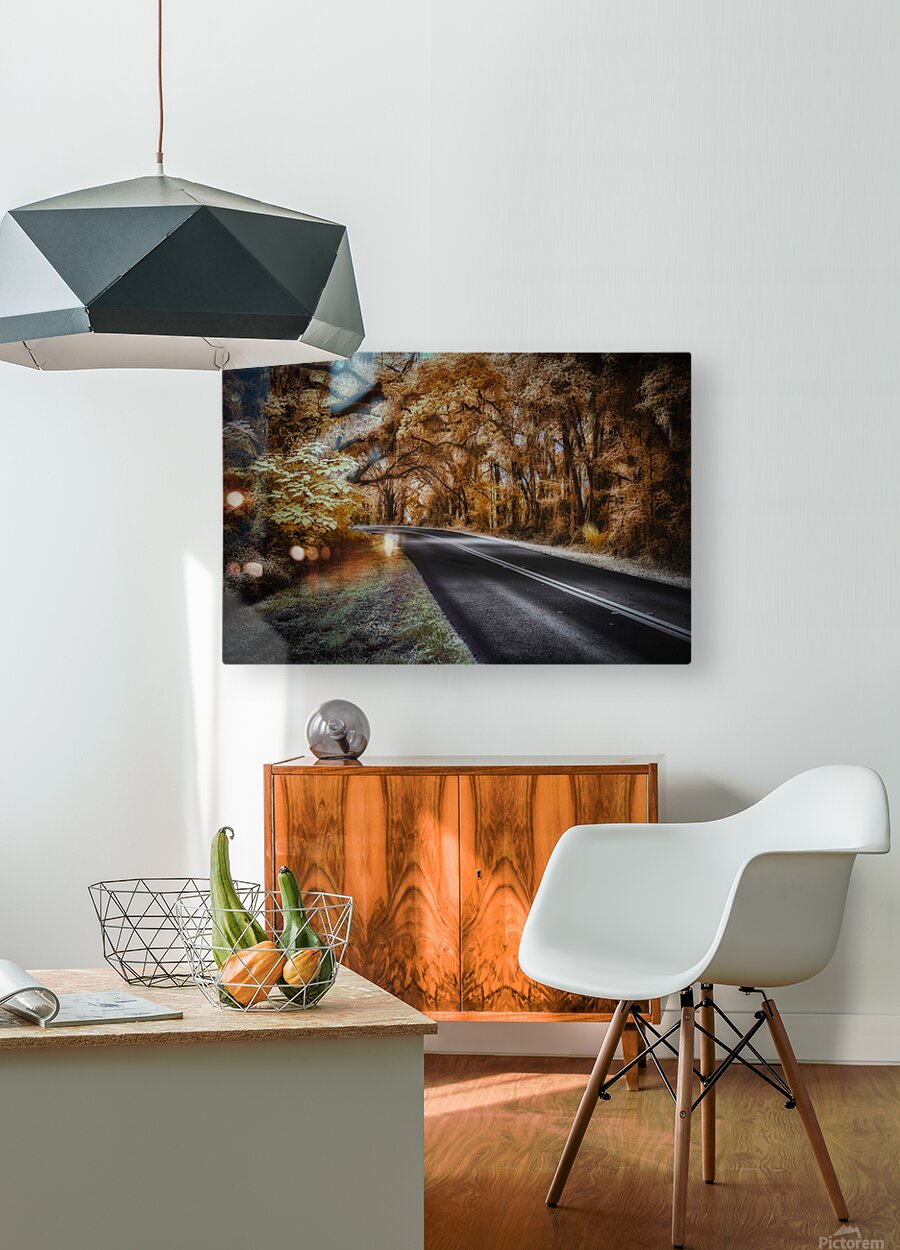 As you drive down a deserted road in the heart of Ocala Florida you cant help but feel a sense of curiosity and wonder. The thick forest that lines the edges of the road seems to be hiding secrets just out of reach beckoning you to explore its depths. Its a warm afternoon and the suns golden rays filter through the dense canopy of trees casting a dappled pattern of light and shadow on the ground. You decide to pull over and take a closer look feeling drawn to the enigmatic beauty of the scene before you. You step out of your car and walk closer to the edge of the road marveling at the intricate details of the towering trees that stand like sentinels on either side. Their branches intertwine overhead forming a natural archway that seems to lead into another world. Mesmerized by the sepia tones blending into patches of luminous yellow and cream you feel as though you have stumbled upon a hidden paradise. Every leaf and branch is meticulously detailed adding to the surreal atmosphere of the landscape. The soft diffused lighting bathes everything in a gentle glow creating a sense of peace and serenity. As you stand there lost in the beauty of this mysterious setting you feel a sudden urge to capture the moment forever. Hastily you grab your camera from the car and start snapping away trying to capture the essence of this ethereal scene before it slips away. With each click of the camera you feel a sense of fulfillment and excitement knowing that you have captured a piece of Ocalas secrets in this stunning infrared curve. You cant help but wonder what other mysteries lie hidden in the depths of these enchanting woods and you feel inspired to continue your exploration of this magical place.