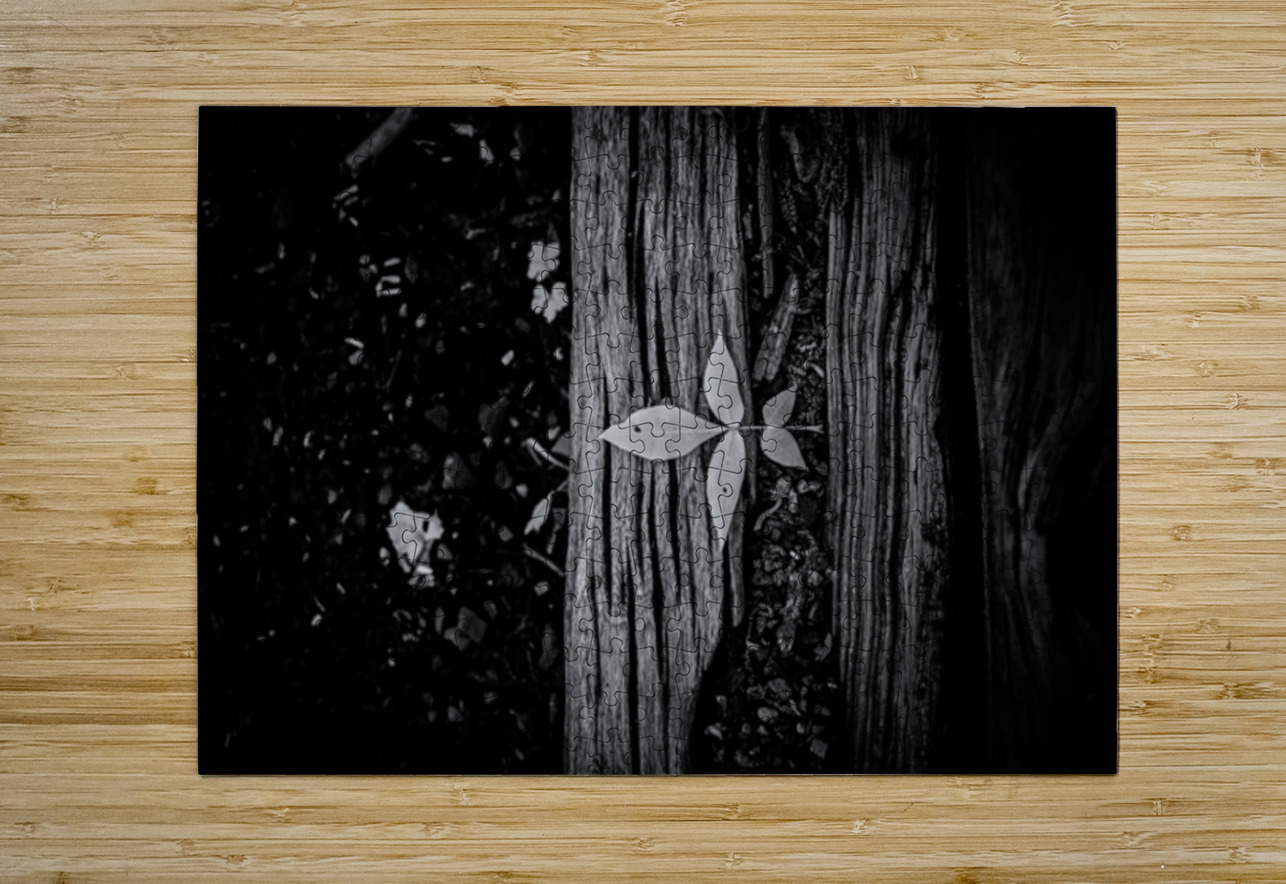 As I wandered through the picturesque landscapes of Tims Ford State Park in Tennessee I stumbled upon a scene that left me in awe. Nestled on a set of railroad tie steps a single leaf had fallen creating a mesmerizing tableau that seemed to defy explanation. Enthralled by the delicate equilibrium between nature and human intervention I marveled at the symmetrical arrangement of five leaves. Placed with precision on the textured wooden step they formed a striking cross shape each leaf mirroring the others in a silent harmonious choreography. At the heart of it all lay a leaf whispering of deeper symbolism and significance. Bathed in the soft interplay of light and shadow the scene assumed an aura of intrigue and enchantment beckoning me to embark on a journey to uncover its hidden depths. As I captured the moment with my camera I couldnt help but feel a sense of wonder at the beauty and complexity of the world around me. This monochromatic photograph titled Step Above serves as a poignant reminder of the interconnectedness of all living things and the magic that surrounds us each day. It is a testament to the artists keen eye for detail and their ability to transform the mundane into the magical offering viewers a glimpse into a realm where the boundaries between the ordinary and the extraordinary blur.