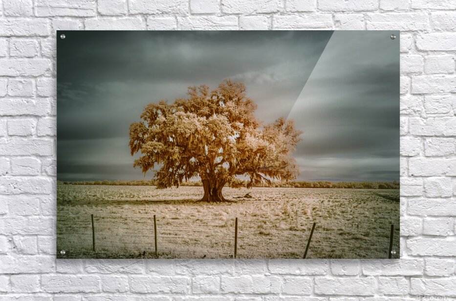 Where Spanish moss dances with copper light a lone oak writes its story across the sky. Through infrareds enchanted lens centuries of strength transform into molten gold while storm clouds gather tales above. Some trees dont just grow - they become keepers of time itself. ?