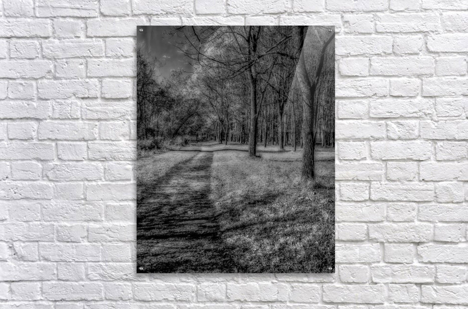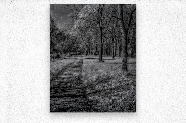 Embark on a visual journey through the outskirts of Knoxville Tennessee where a captivating black and white infrared photograph unveils a timeless scene. A rustic dirt path winds along the edge of a dense forest each step revealing a chiaroscuro dance between stark light and shadows. The monochrome treatment intensifies the contrasts transforming the ordinary into the extraordinary. The path under the influence of infrared light takes on an ethereal quality inviting viewers to immerse themselves in the quiet beauty of the Tennessee landscape. Stark shadows stretch across the forest floor creating intricate patterns that add depth to the composition. The play of light enhances the texture of the trees and foliage turning the scene into a visual poem that resonates with the essence of the natural world. This black and white infrared image is not merely a photograph its a portal to a realm where simplicity meets sophistication and where a dirt path becomes a conduit for introspection. It captures the subtle poetry woven into the landscape just outside Knoxville where light and shadow coalesce in a dance that transcends time.