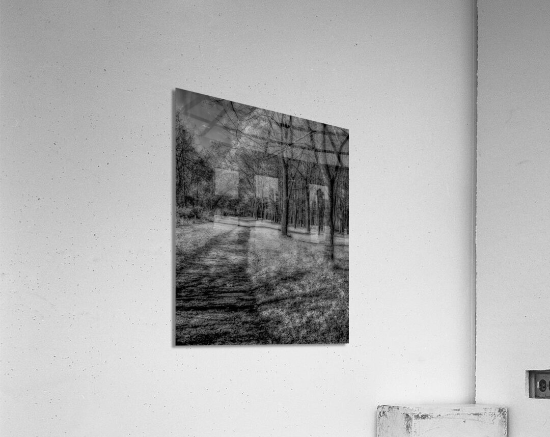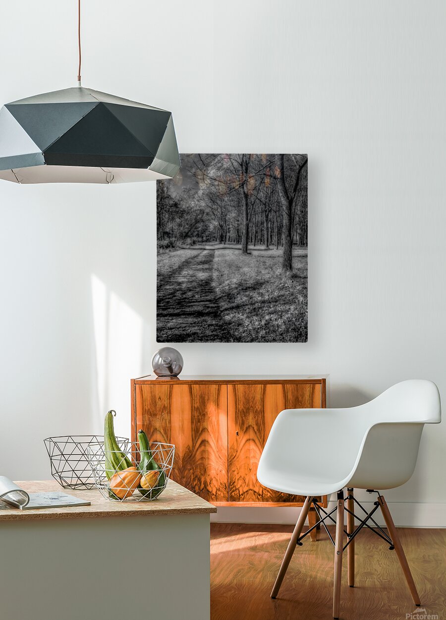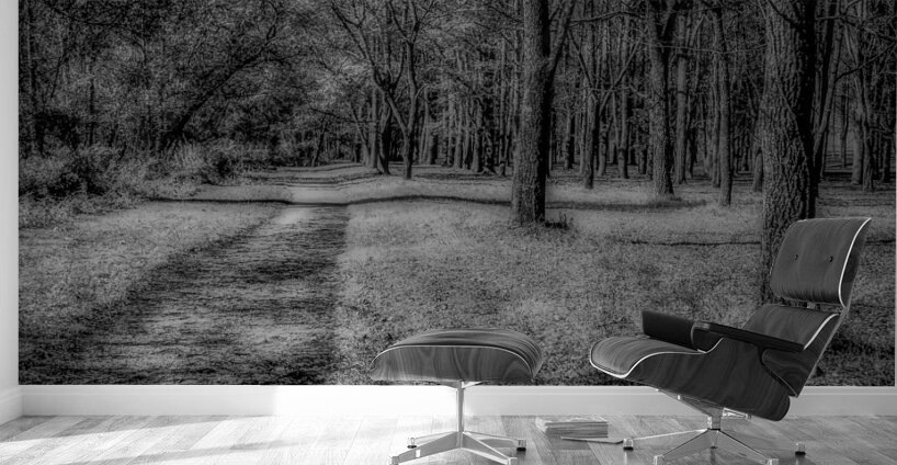 Enchanted Pathways: A Monochrome Overture  Wood print