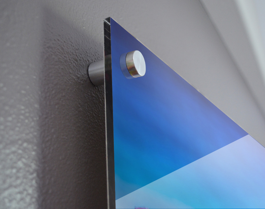 Printed to the edge - Ready to hang - provided with 4 premium polished aluminum stand off ( wall screws and mounting hardware provided )
