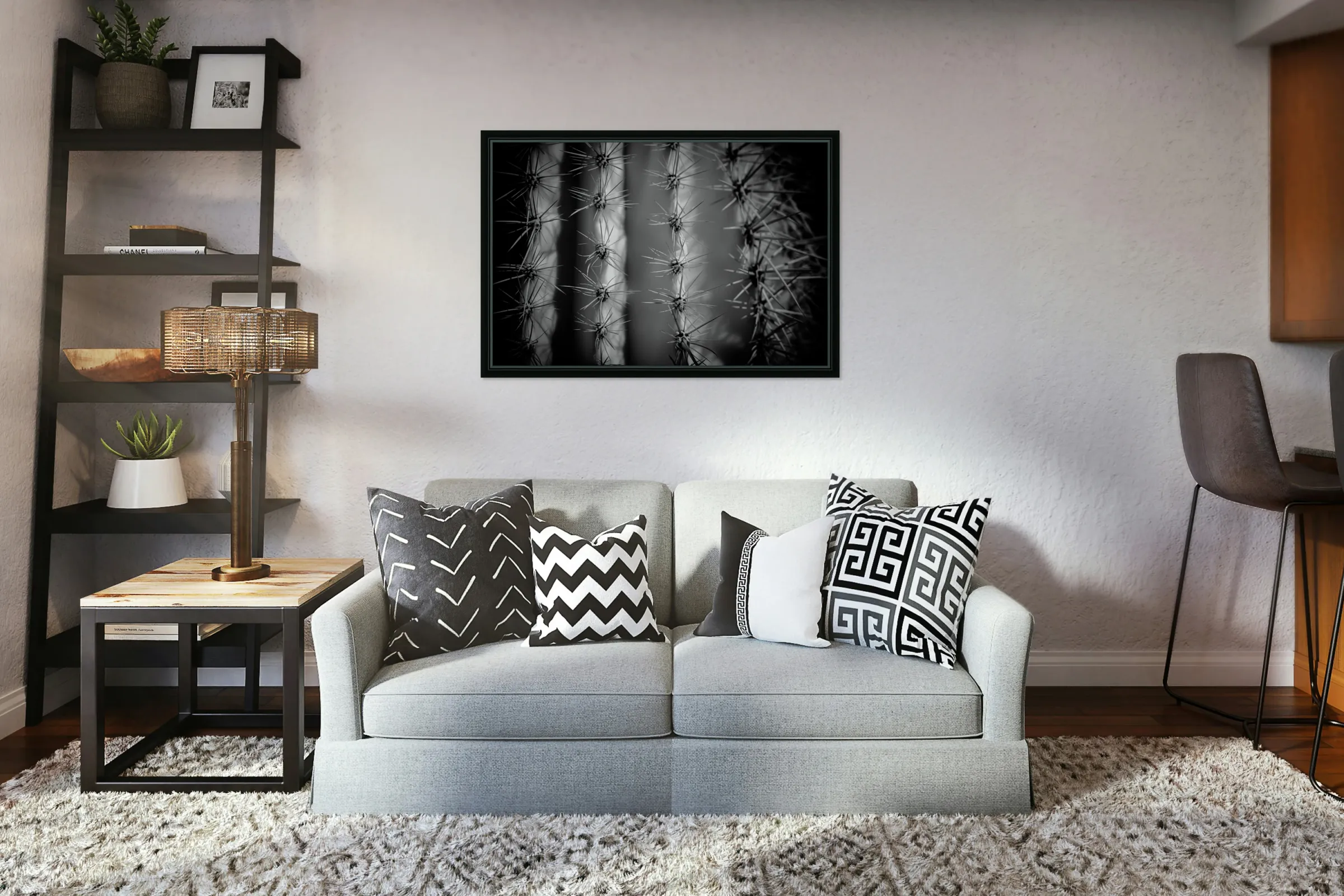 black and white cactus photography