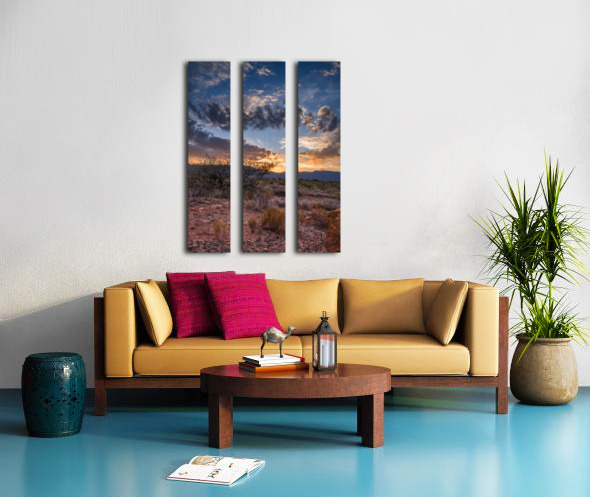 Radiance Unfurled Over Rocky Plains beckons the viewer into a realm where earth meets sky in an ethereal embrace. My wife and I were driving back from the store in Cottonwood Arizona when the sky started to light up in the most spectacular way. We couldn’t resist so we pulled over onto a dirt road to capture this image. This captivating photograph unveils a desert landscape cloaked in the mystique of twilight. In the foreground rugged dry shrubs and the rocky terrain stand as silent sentinels guardians of an ancient and untamed wilderness. A solitary tree resolute against the encroaching dusk reaches skyward framed by the distant shadowy grandeur of mountains that whisper secrets of time immemorial. Above the heavens unfold in a mesmerizing dance of light and shadow. Dramatic clouds gather at the horizon woven with threads of golden and fiery orange as the sun surrenders its radiance to the encroaching night. Piercing through this celestial tapestry luminous rays of sunlight stream defiantly through the cloud cover casting a divine glow that pierces the deepening blue canopy. This interplay creates a powerful contrast evoking a sense of wonder and the infinite. The piece captures the transient moment when day bows to night encapsulating the profound beauty and mystery of natures fleeting spectacles. Its an invitation to wander into the wild heart of the world and to lose oneself in the enigmatic beauty of the unseen. Radiance Unfurled Over Rocky Plains stands as a testament to the awe-inspiring duality of earth and heavens encouraging the beholder to find their own place within this eternal saga.