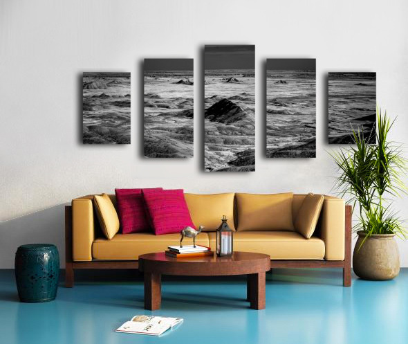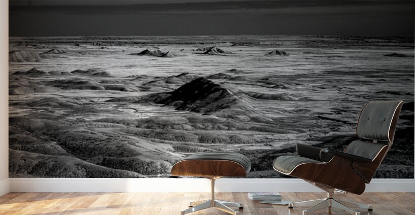 Embark on an unforgettable adventure as my wife and I journeyed through the captivating landscapes of the Badlands in South Dakota. Witness the breathtaking beauty of this rugged terrain where every shadow tells a story of mystery and intrigue. Step into a world where the shadows dance across the rugged earth revealing a landscape shrouded in enigma. The realm of sharply ridged hills and deep valleys is illuminated by a captivating play of light and shadow bringing texture and depth to every crevice. The horizon stretches endlessly beckoning the viewer to explore beyond the intricate patterns carved into the earth. In a black and white photograph that captures the essence of the lands ancient soul this artwork invites you to lose yourself in the Shadows of the Earth.