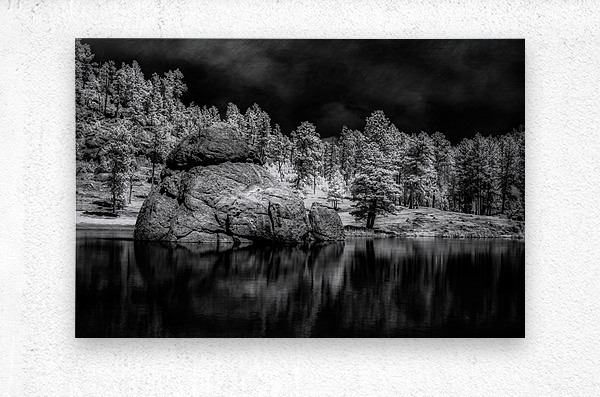 On a captivating afternoon I embarked on an expedition to Sylvan Lake nestled within the serene embrace of Custer State Park South Dakota. Armed with my camera I ventured to immortalize this natural wonders enigmatic allure. Amidst the tranquil waters of Sylvan Lake I encountered a spectacle that captured my gaze: a colossal rock protruding majestically from the depths below. Through the lens of my camera bathed in true black and white invisible light the scene took on an ethereal quality shrouded in mystery and intrigue. The monochrome palette lent an air of timeless elegance to the landscape accentuating every contour and crevice of the imposing rock formation. Against the lakes still surface the rock stood as a silent sentinel a testament to the enduring power of natures handiwork. As I captured the scene with a click of my camera I was awestruck by the stark beauty that unfolded before me. The infrared imagery revealed a world unseen to the naked eye a realm of subtle contrasts and hidden depths waiting to be explored. In that fleeting moment amidst the quietude of Sylvan Lake I felt a profound sense of connection to the natural world. The monochrome marvel of the rock bathed in invisible light served as a poignant reminder of the timeless beauty that surrounds us waiting to be discovered and cherished.
