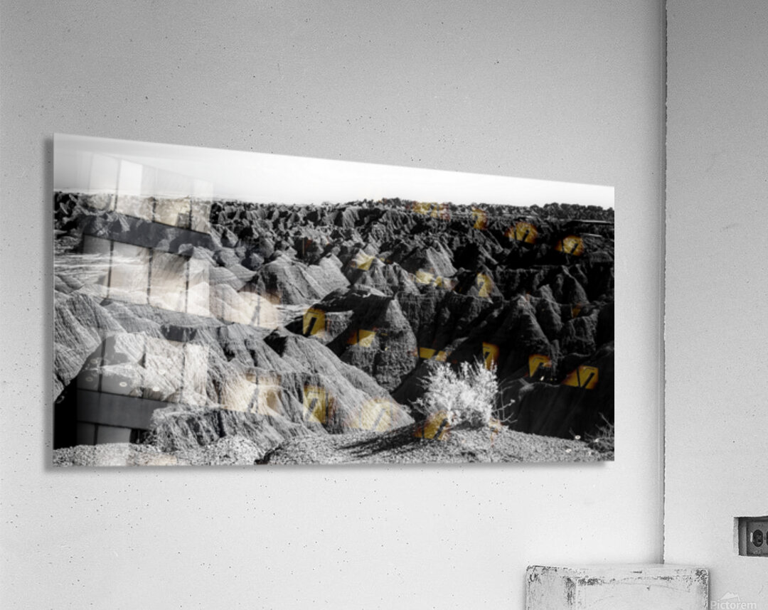 Embark on an unforgettable adventure as my wife and I journeyed through the captivating landscapes of the Badlands in South Dakota. Witness the breathtaking beauty of this rugged terrain where every shadow tells a story of mystery and intrigue. Step into a world where the shadows dance across the rugged earth revealing a landscape shrouded in enigma. The realm of sharply ridged hills and deep valleys is illuminated by a captivating play of light and shadow bringing texture and depth to every crevice. The horizon stretches endlessly beckoning the viewer to explore beyond the intricate patterns carved into the earth. In a black and white photograph that captures the essence of the lands ancient soul this artwork invites you to lose yourself in the Shadows of the Earth.
