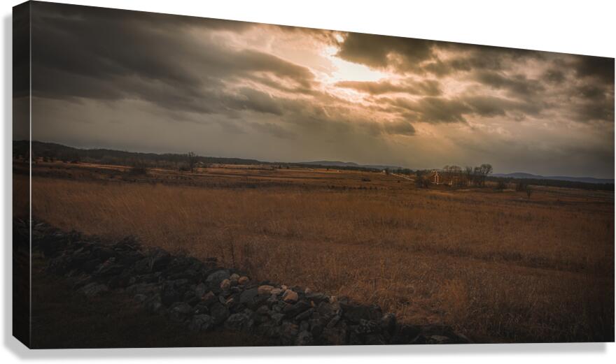 As storm clouds part over Gettysburgs hallowed ground golden light bathes the historic Codori Barn in ethereal warmth. A moment where past and present merge reminding us that these fields still whisper stories of courage and sacrifice.