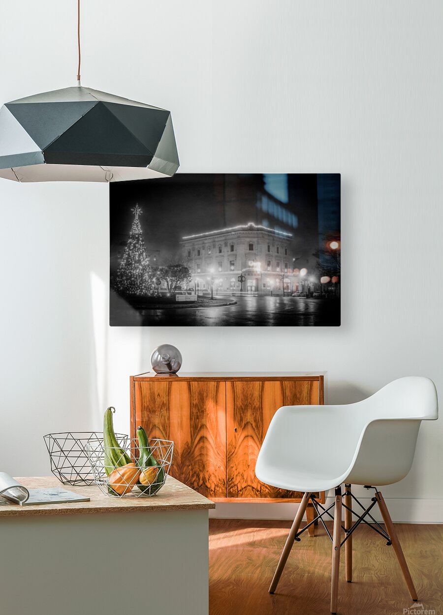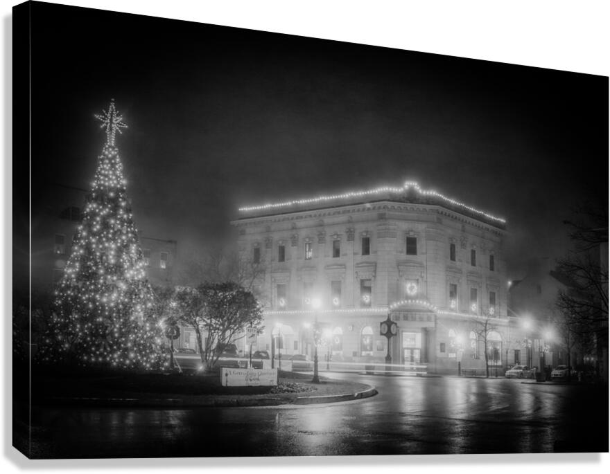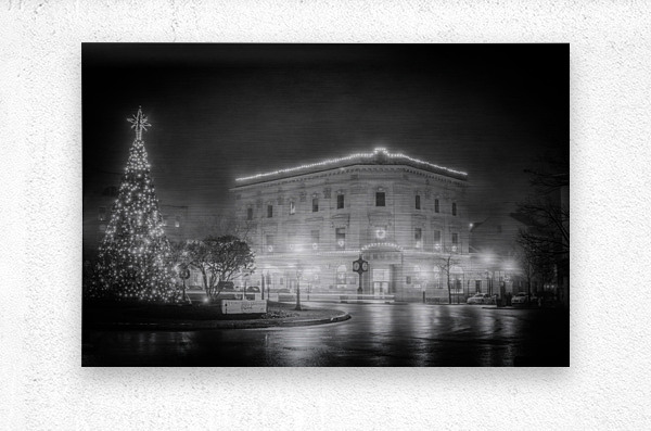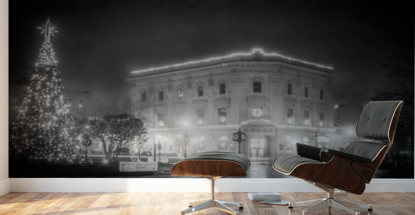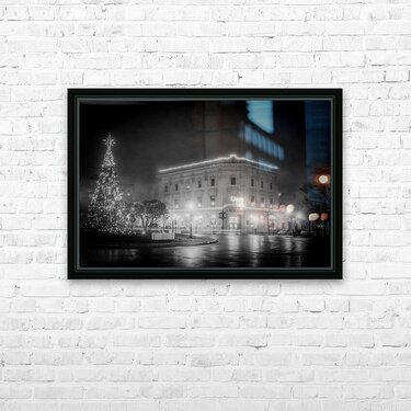 A misty evening transforms this historic building into a noir masterpiece. Christmas lights trace the roofline while street lamps cast golden halos th...[+]