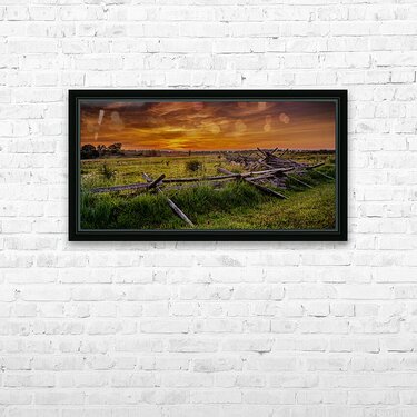Where history meets golden hour at Gettysburg - a Civil War-era split-rail fence stands guard as nature paints the sky in flames of orange and purple....[+]
