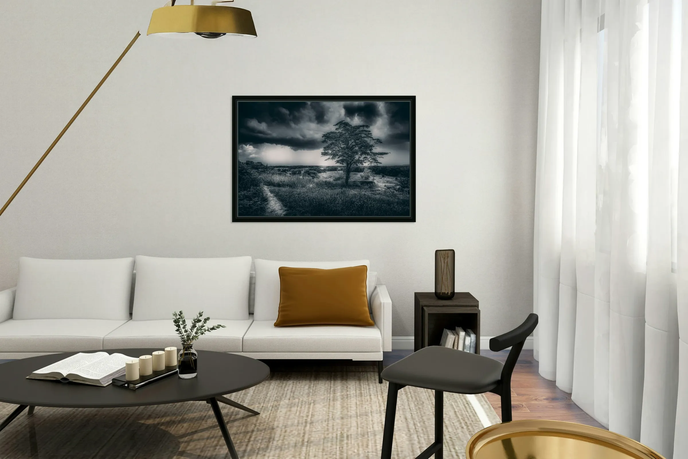 A powerful moment where past meets present on Gettysburg's hallowed ground. This lone sentinel tree stands defiant against gathering storm clouds above Little Round Top, creating a timeless meditation on strength and resilience. Through monochromatic artistry, this historic battlefield vista transforms into a dramatic statement about nature's endurance on sacred soil, where every blade of grass and rolling cloud holds echoes of history.