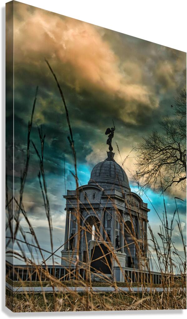 An ominous storm brewing over the Pennsylvania Monument in Gettysburg.