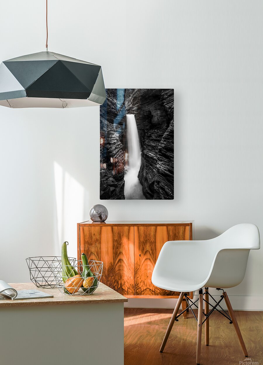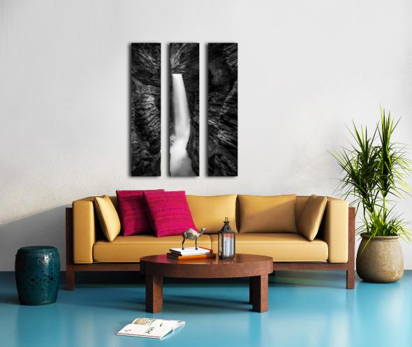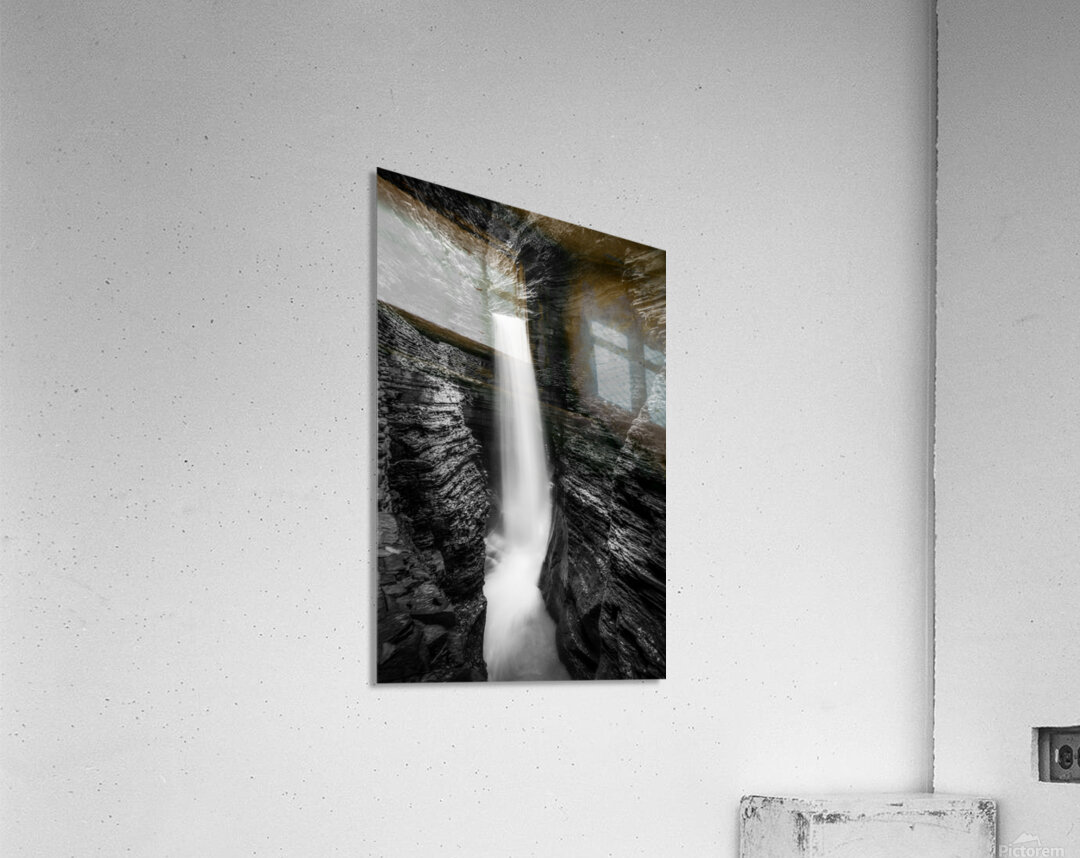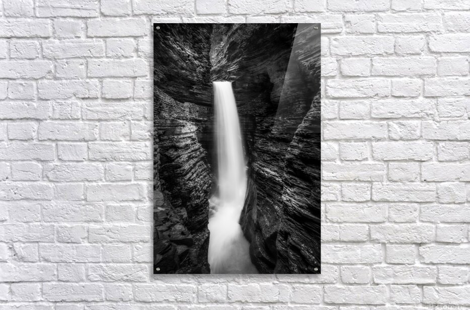 ABOUT THIS ARTWORK: MONOCHROME MAJESTY: WATKINS GLEN WATERFALL IN LATE OCTOBER