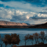 Where red cliffs meet stormy skies at Quail Creek Utah reveals its hidden oasis. Through the lens of evening light this desert reservoir becomes a med...[+]