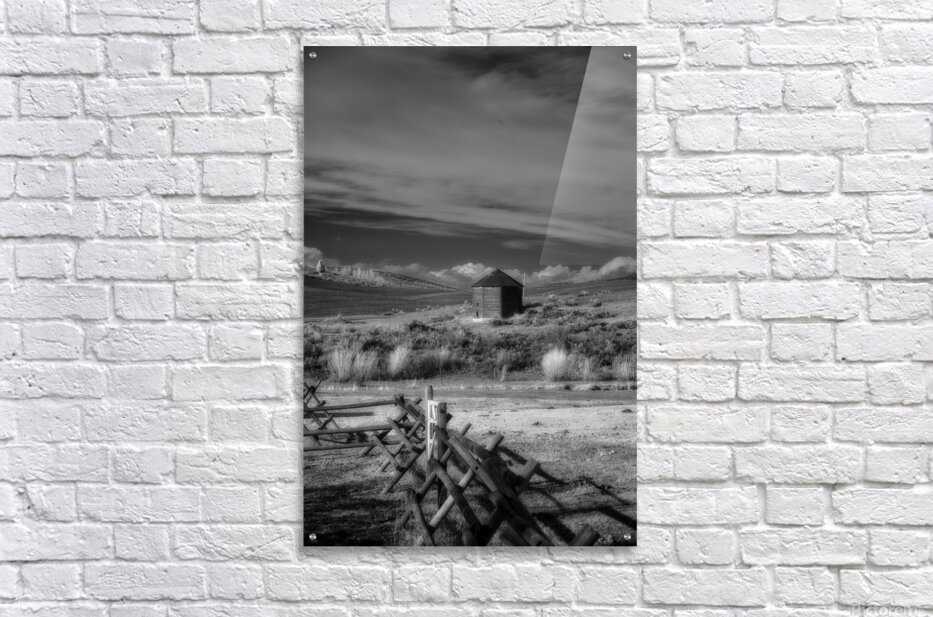 Where weathered fences meet mountain shadows a solitary grain silo stands as testament to the American Wests enduring spirit. Through black and white artistry this humble agricultural sentinel transforms into a powerful symbol of heritage and perseverance. Part of the Shades of Light & Shadow collection this image captures the dialogue between human endeavor and natures grand canvas.