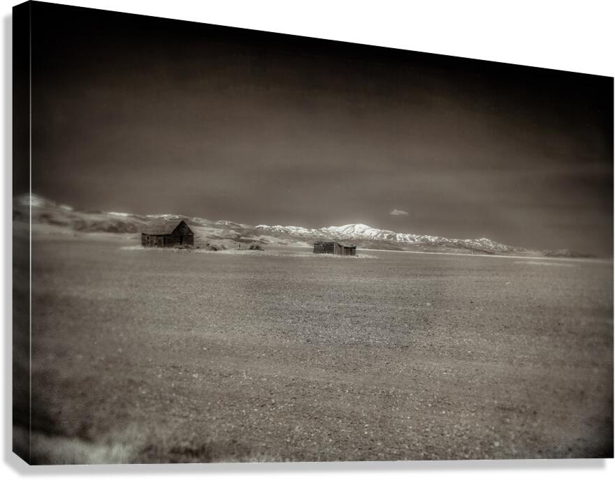 Where prairie meets mountain abandoned homesteads stand as quiet witnesses to Western dreams. Through infrared photography snow-capped peaks and weathered buildings emerge like ghosts of the frontier creating a timeless dialogue between settlement and wilderness. Part of the Shades of Light & Shadow collection this image captures the profound solitude of high desert plains.