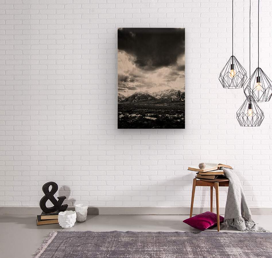 In the grand amphitheater of the Tetons where peaks and storm clouds engage in their eternal conversation I discovered this moment when nature decided to speak in its most dramatic voice. Through monochrome vision the familiar landscape transforms into a powerful exchange between earth and sky. The mountains stand defiant their snow-dusted summits rising to challenge the brooding clouds above. Below a quiet field of sage watches the drama unfold creating natures own audience to this magnificent exchange. Each shadow and highlight adds its voice to the conversation while the turbulent sky responds with its own dark proclamations. Some say mountains never truly reveal themselves until storm clouds gather to test their resolve. On this day as light and shadow exchanged their ancient arguments across the Teton range I witnessed that truth. This isnt just a mountain scene - its a profound dialogue between elements where every peak and cloud contributes to natures most compelling conversation.
