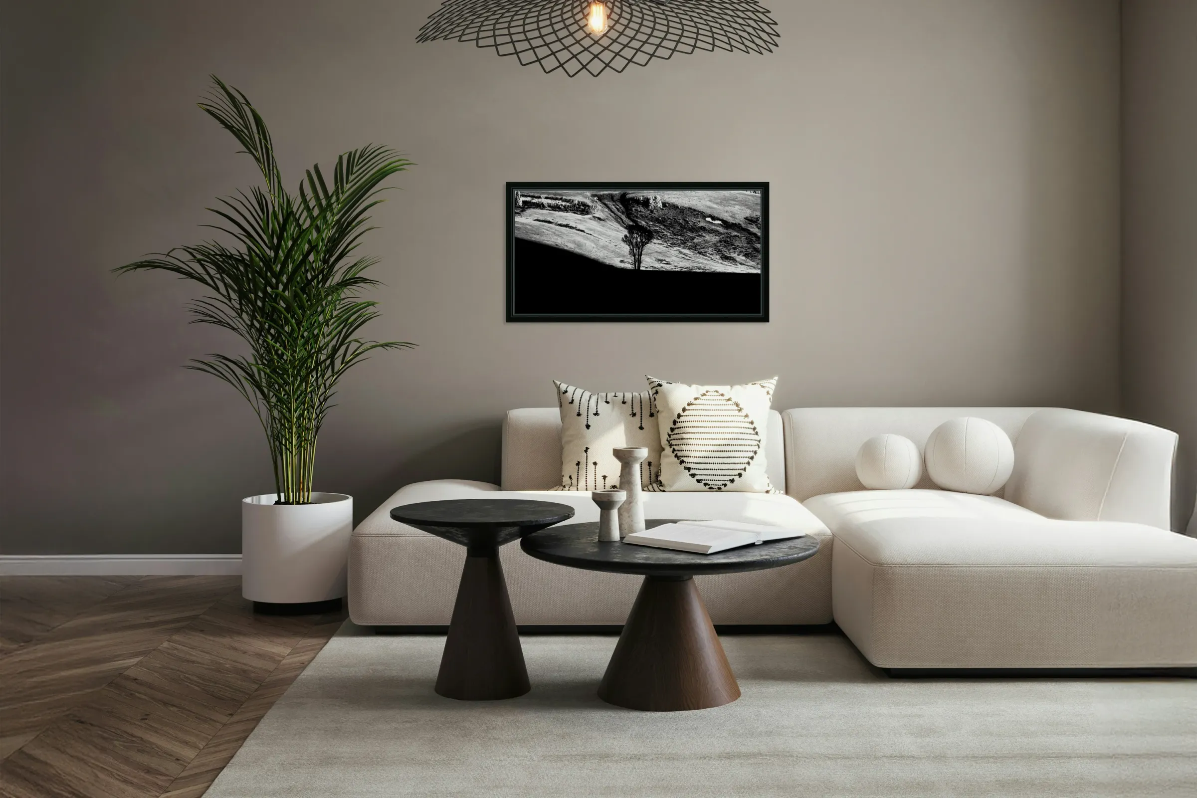 In the stark beauty of the Teton foothills where light carves shadows into winter slopes I discovered this moment of perfect isolation. Through monochrome vision a solitary tree stands like a quiet guardian against the mountains face its bare branches reaching skyward while shadows paint the snow-touched slope in infinite shades of grey. The scene unfolds with dramatic simplicity - the lone tree perfectly positioned against the textured mountainside creating natures own study in contrast and solitude. Each branch seems to tell its own story of survival of standing strong through countless seasons while the mountain behind holds its ancient vigil. Some say the most powerful images are those that speak of solitude without feeling lonely. On this winter day in the Tetons as light played across the mountains face and highlighted this singular tree I witnessed that truth. This isnt just a landscape - its a meditation on strength in solitude where a single tree becomes the focal point of natures own dramatic composition.