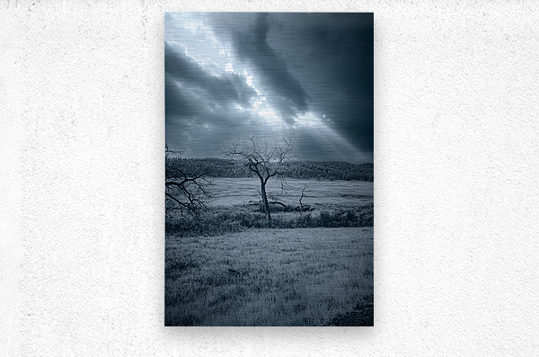 As my wife and I embarked on a captivating journey through the scenic landscapes of Custer South Dakota we found ourselves immersed in the serene beauty of natures untouched grandeur. Little did we know that our adventure would lead us to a captivating moment captured in a dramatic landscape scene of moody hues and ethereal beauty. As we meandered along the winding paths of the wildlife loop our eyes were drawn to a sight that stirred the soul—a solitary leafless tree standing proud amidst a grassy field its gnarled branches reaching out like ancient fingers to the sky. Cloaked in tones of blue the scene exuded a sense of age weathering and perhaps even a hint of chilliness in the air. Above the sky loomed heavy with textured clouds their depths pierced by rays of light cascading down upon the landscape below. This interplay of light and shadow added a dynamic element to the image enhancing its sense of depth and drama. Capturing the moment with my camera I felt a profound connection to the solitude and grandeur of the wilderness surrounding us. The monochromatic blue palette further enhanced the ethereal quality of the scene evoking a sense of quiet contemplation and the fleeting beauty of a moment captured in time. As we continued our journey through Custers enigmatic wilderness the memory of the isolated tree standing amidst the moody landscape stayed with us a reminder of the timeless allure and captivating beauty of the American West.