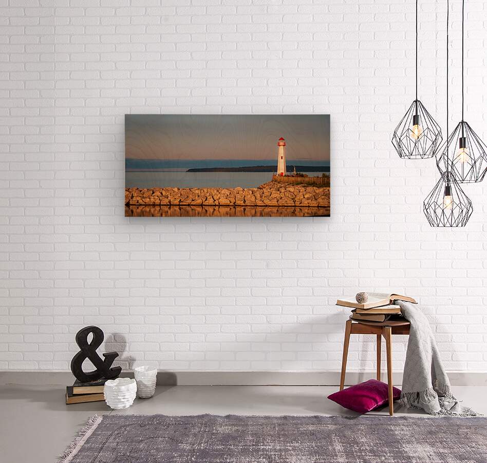 Bathed in the warm embrace of golden hour light the Saint Ignace lighthouse stands proudly at the entrance to one of Michigans most historic harbors its red and white tower glowing like a beacon of welcome against the serene waters of Lake Huron. This magnificent composition captures the lighthouse in its most beautiful light where the massive stone breakwater creates a perfect foreground of weathered granite that speaks to the enduring strength required to tame the Great Lakes mighty waters. The calm evening light transforms both water and stone into a symphony of warm tones while distant islands float like dreams on the horizon. Here where the Straits of Mackinac have guided travelers for generations we witness the timeless beauty that makes Saint Ignaces lighthouse not just a navigational aid but a beloved symbol of Michigans maritime heritage - a guardian that has watched over these waters with unwavering dedication welcoming countless vessels home to safe harbor.