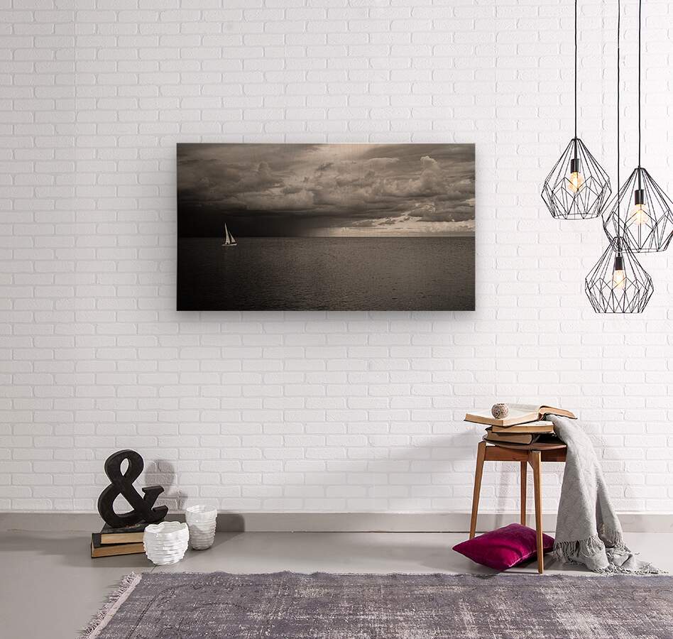 Sailing Beyond the Storms Embrace  Wood print