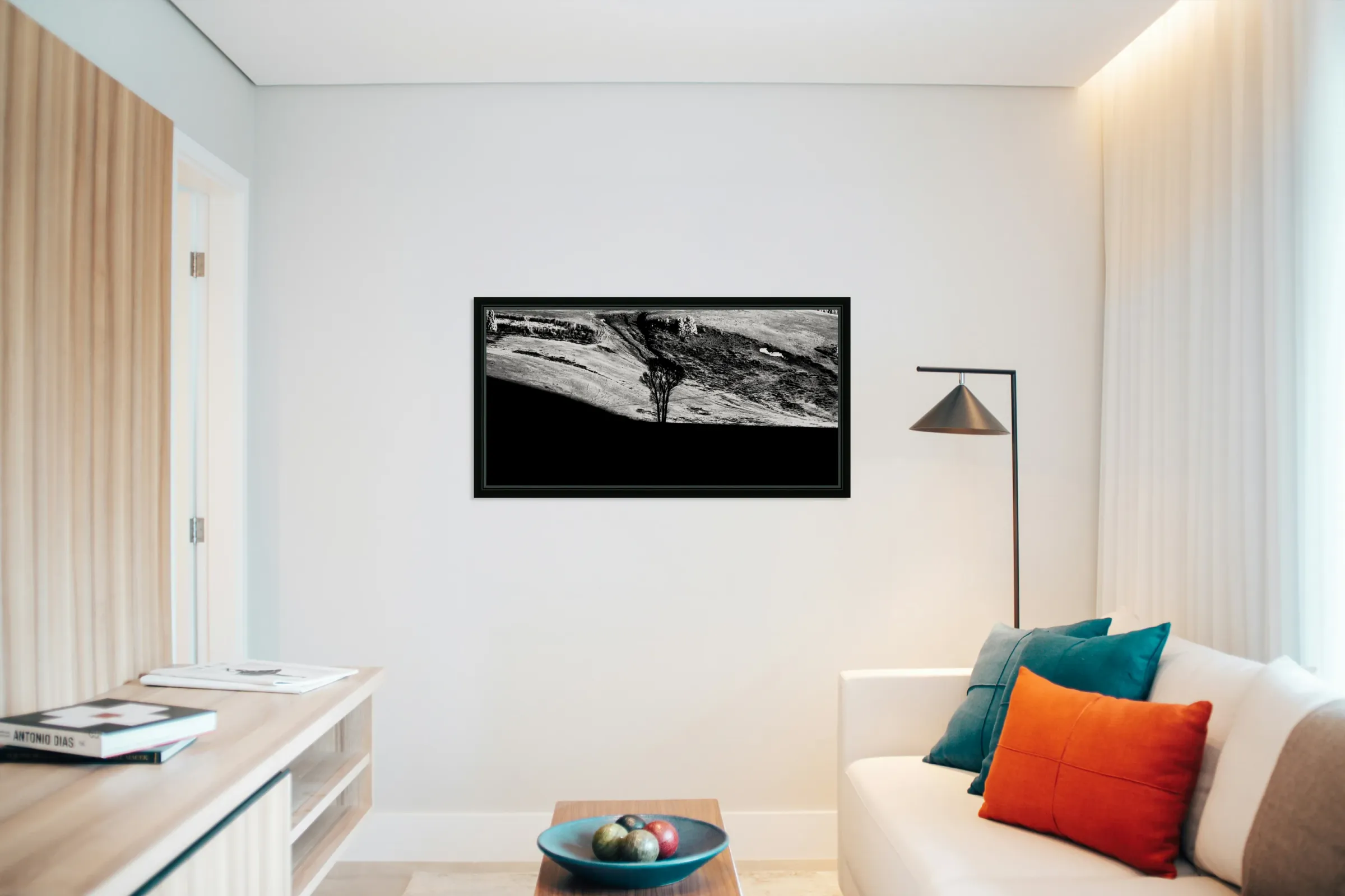 In the stark beauty of the Teton foothills where light carves shadows into winter slopes I discovered this moment of perfect isolation. Through monochrome vision a solitary tree stands like a quiet guardian against the mountains face its bare branches reaching skyward while shadows paint the snow-touched slope in infinite shades of grey. The scene unfolds with dramatic simplicity - the lone tree perfectly positioned against the textured mountainside creating natures own study in contrast and solitude. Each branch seems to tell its own story of survival of standing strong through countless seasons while the mountain behind holds its ancient vigil. Some say the most powerful images are those that speak of solitude without feeling lonely. On this winter day in the Tetons as light played across the mountains face and highlighted this singular tree I witnessed that truth. This isnt just a landscape - its a meditation on strength in solitude where a single tree becomes the focal point of natures own dramatic composition.