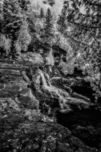 North Woods waterfall black and white
