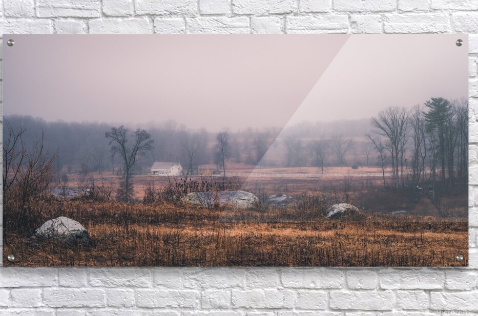 Through winter's gentle mist, the historic Slyder Farm emerges from time's veil. This humble homestead, caught between Confederate lines and Big Round Top, witnessed history unfold during those fateful July days. Now, as morning light bathes the scene in subtle rose and amber tones, the weathered rocks and winter-bronzed fields stand as quiet guardians of memory.