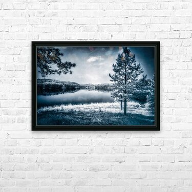 Whispers of Enchantment: The Pine Tree Guardian of the Lakes Edge Picture Frame Printing