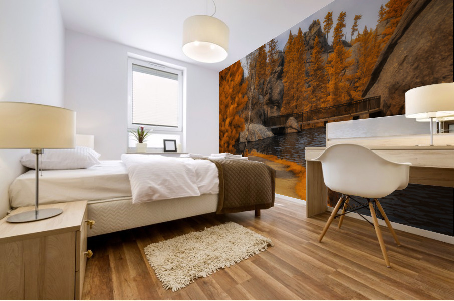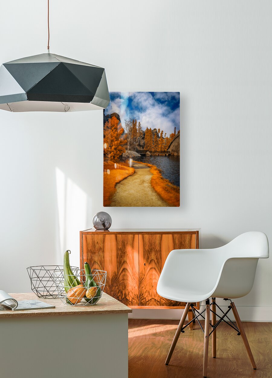 ABOUT THIS ARTWORK: AUTUMNAL SERENITY: SYLVAN LAKE PATH IN INFRARED