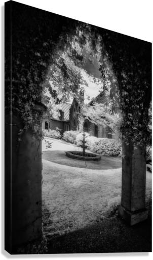 Step into the timeless courtyard of Saint James Episcopal Church in Eufaula, Alabama, where the magic of black and white infrared photography transforms the ordinary into an enchanting tale. This captivating image transcends location, inviting viewers into a realm where history and nature harmonize. Through the lens of infrared photography, the courtyard unveils its secrets—a fountain whispers stories of ages past, framed by an archway cloaked in the verdant embrace of ivy. The monochrome treatment adds a touch of mystery as if the scene could unfold in any corner of the world, transcending the specifics of place. As part of our Spiritual Splendor series, "Old World Courtyard" is more than a visual composition; it's a lyrical exploration of the intersection between architecture and nature. The archway, adorned with ivy, becomes a portal to a place where time stands still, and the echoes of history reverberate.