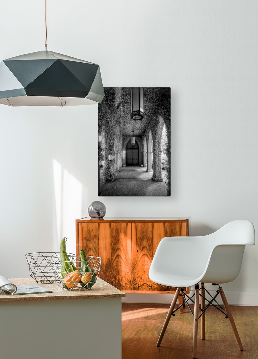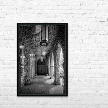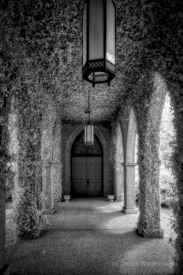 Embark on an enchanting visual journey through the captivating walkway of St James Episcopal Church in Eufaula, Alabama, where the serenity of nature intertwines with the architectural beauty of this historic church. In this mesmerizing infrared image, discover an ethereal scene as the walkway, covered in vines, leads the way to a big wooden door framed by enchanting arches. As my wife and I ventured into the heart of St James Episcopal Church, the walkway between the sanctuary and social hall unfolded like a secret garden draped in the lush embrace of climbing vines. The infrared lens captured the scene from within, offering a unique perspective that showcased the delicate dance between nature and architecture. The arches along the walkway framed a grand wooden door, inviting us into the sanctuary with a sense of anticipation. The infrared image, bathed in invisible light, revealed a world where the ordinary transformed into the extraordinary, and the walkway became a passage to serenity. Inside the hall, ivy-covered walls created a verdant tapestry, adding charm to the architectural wonder. Ornate lights cast a warm glow, illuminating the ivy-clad surroundings and infusing the space with a timeless grace. Titled "Tranquil Entrance," this photograph encapsulates the essence of our exploration—a harmonious blend of nature's serenity and the storied architecture of St James Episcopal Church. It serves as an invitation to uncover the hidden gems within historic churches and to appreciate the beauty that emerges when the organic and the man-made converge in a sacred space.
